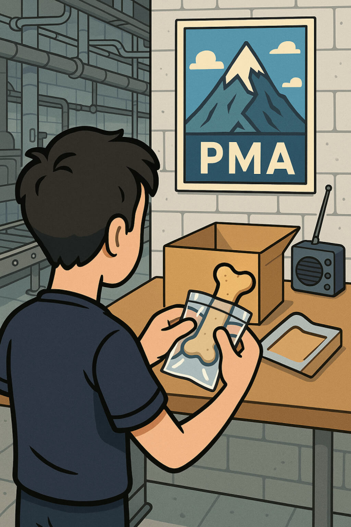 Dog bone packer doesn’t have the same ring to it as Goods Auditor. Part-time, thank you very much. Not like Eddie or Sheila. They volunteer one day a week and don’t even get paid. Not me though. I’m part of the team. The posters help. Especially when it gets tough. My favourite is the one on the wall in front of where I work. It has three letters – PMA.